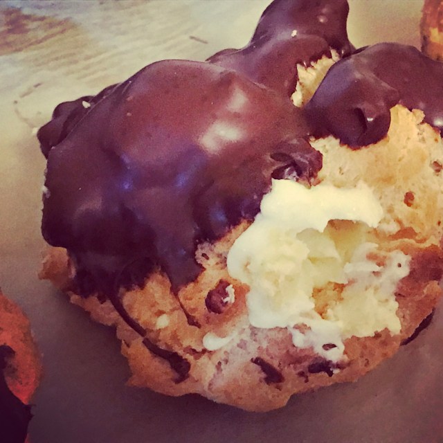 Ridiculous stuffage of cream. Yes, I just made up the word stuffage. These cream puffs weigh a ton! So much filling! #bygracecakes #doughnuts #glutenfree